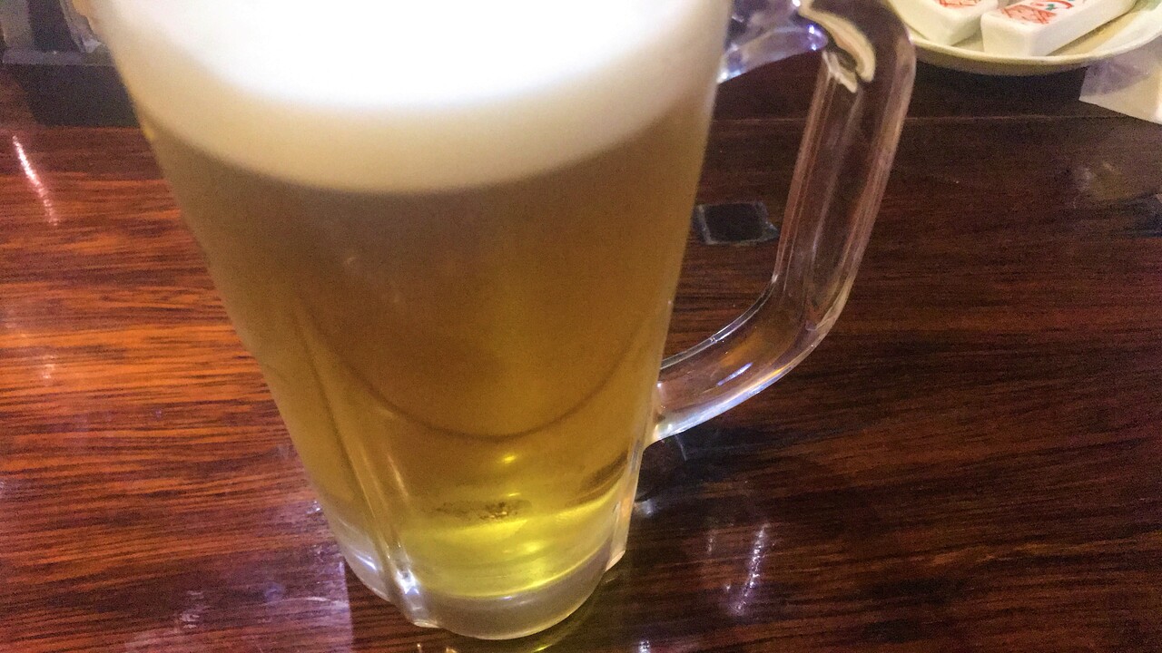 晩酌セットの生ビールを2杯飲み干し