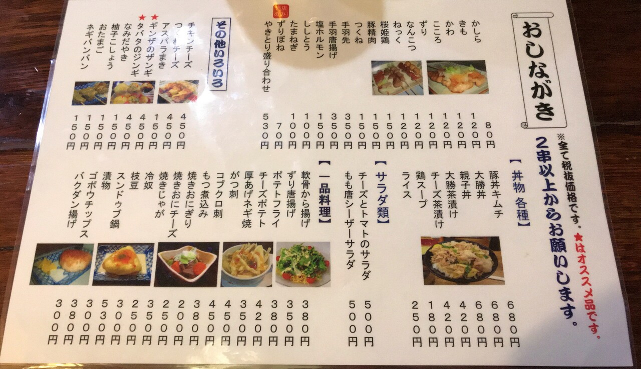 メニューは、焼き鳥以外のメニューも豊富。
