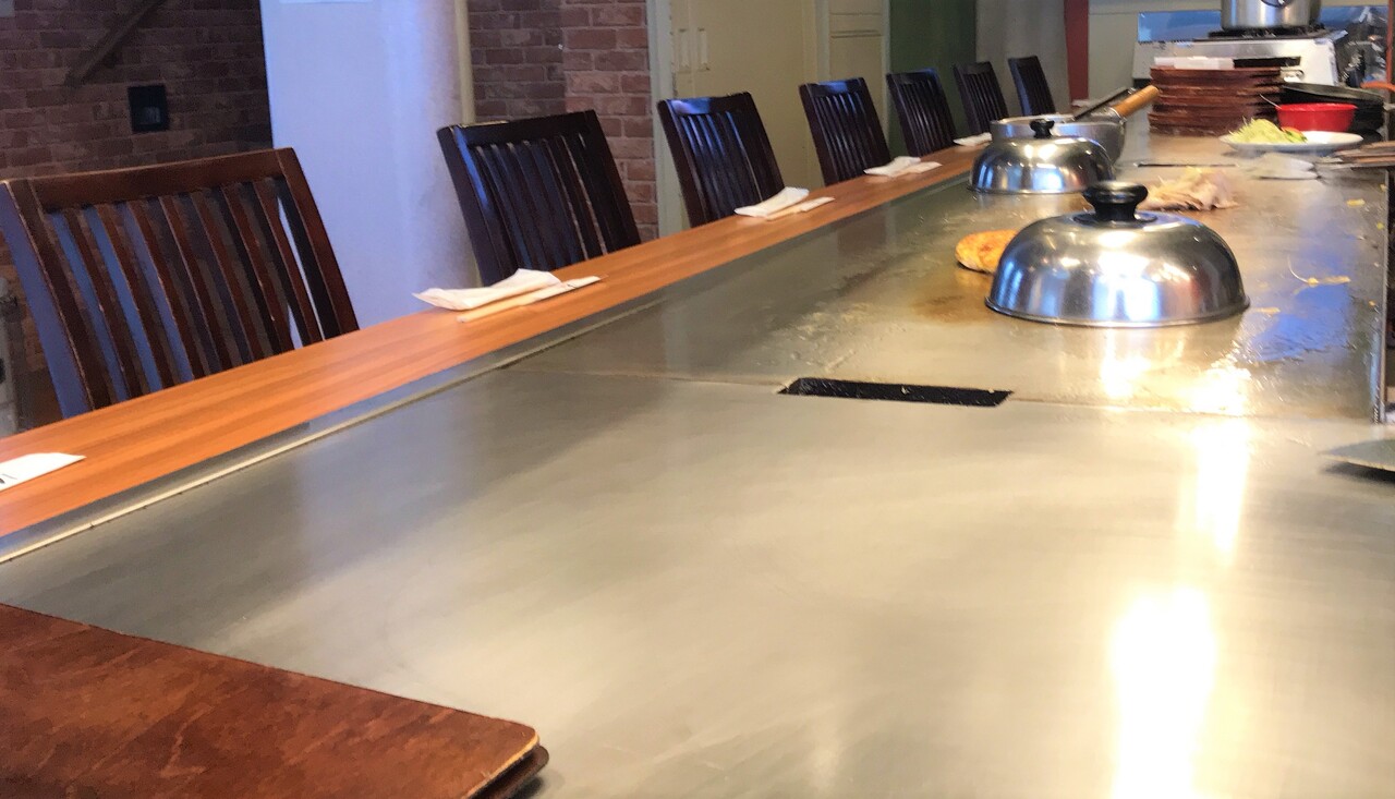 テーブル幅が狭く鉄板がすぐ目の前ですが、