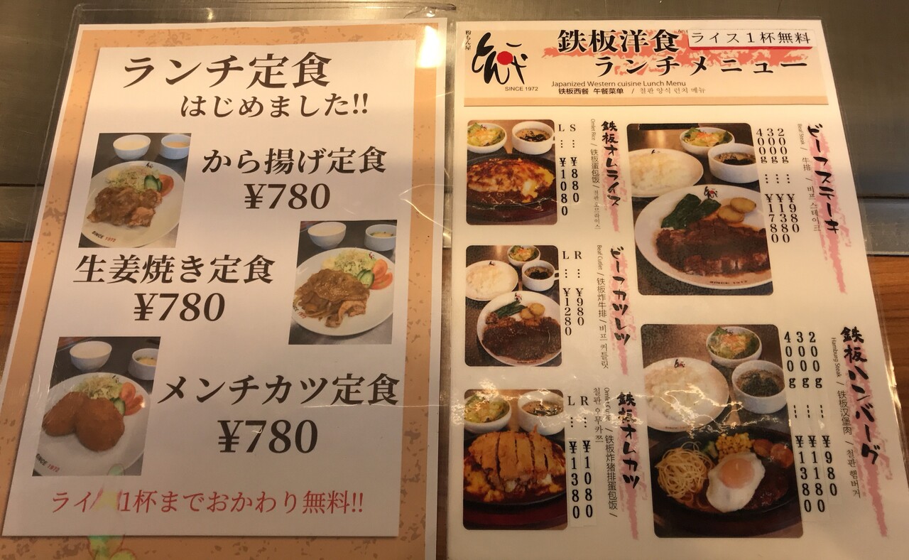 左が各種定食で、右が洋食ランチ。