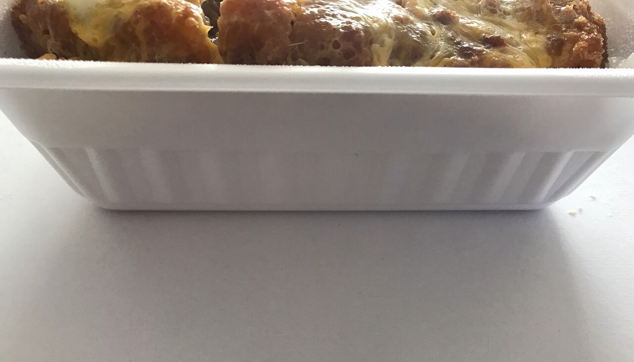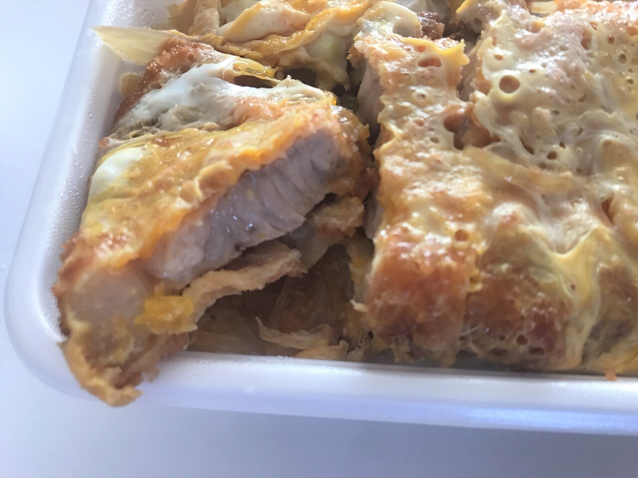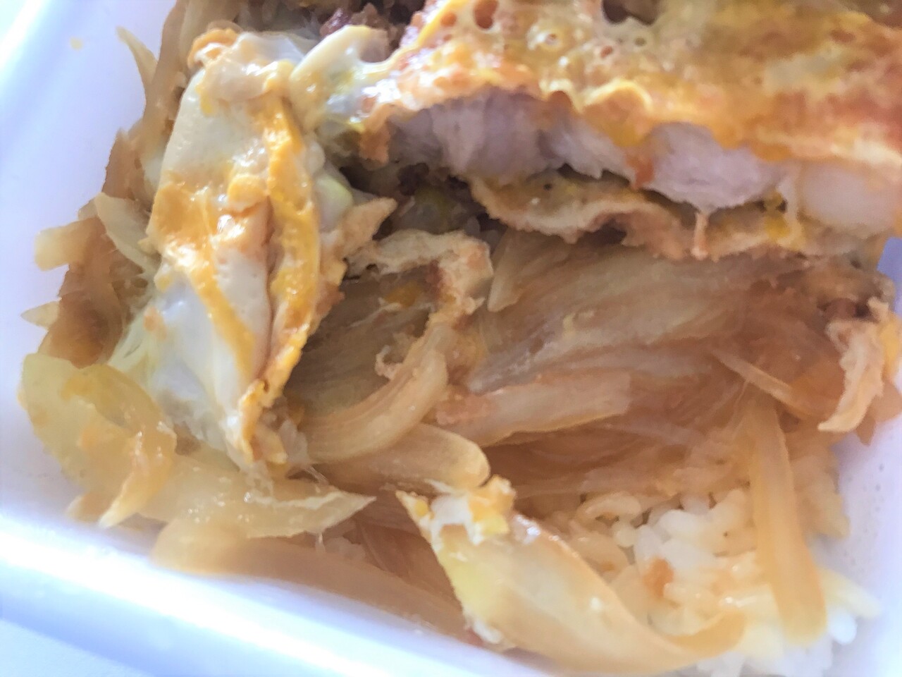 角型容器に、ずっしりと入った かつ丼。