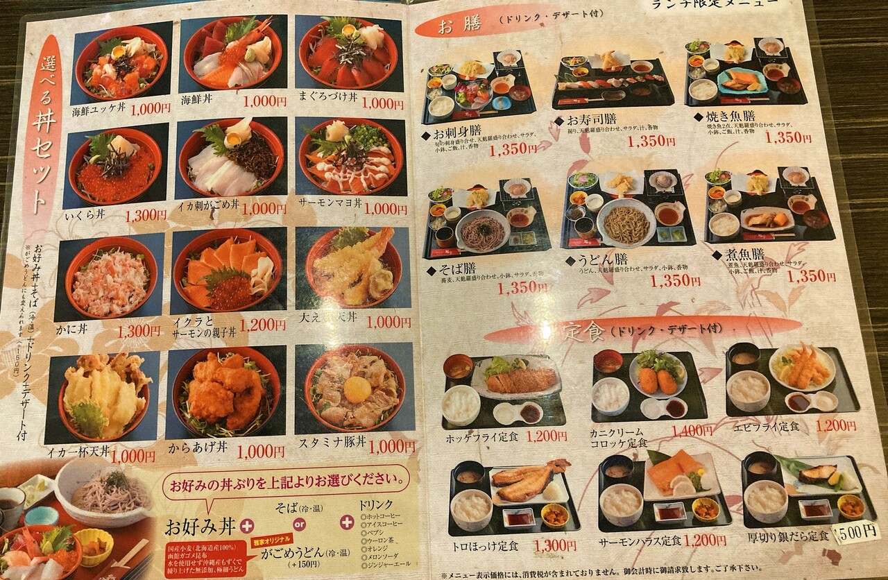 こちらは1000円丼が多数で、一番高い丼でも1300円。