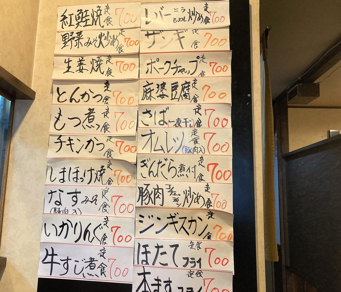 壁にはオール700円の定食メニューがずらりと貼られていました。