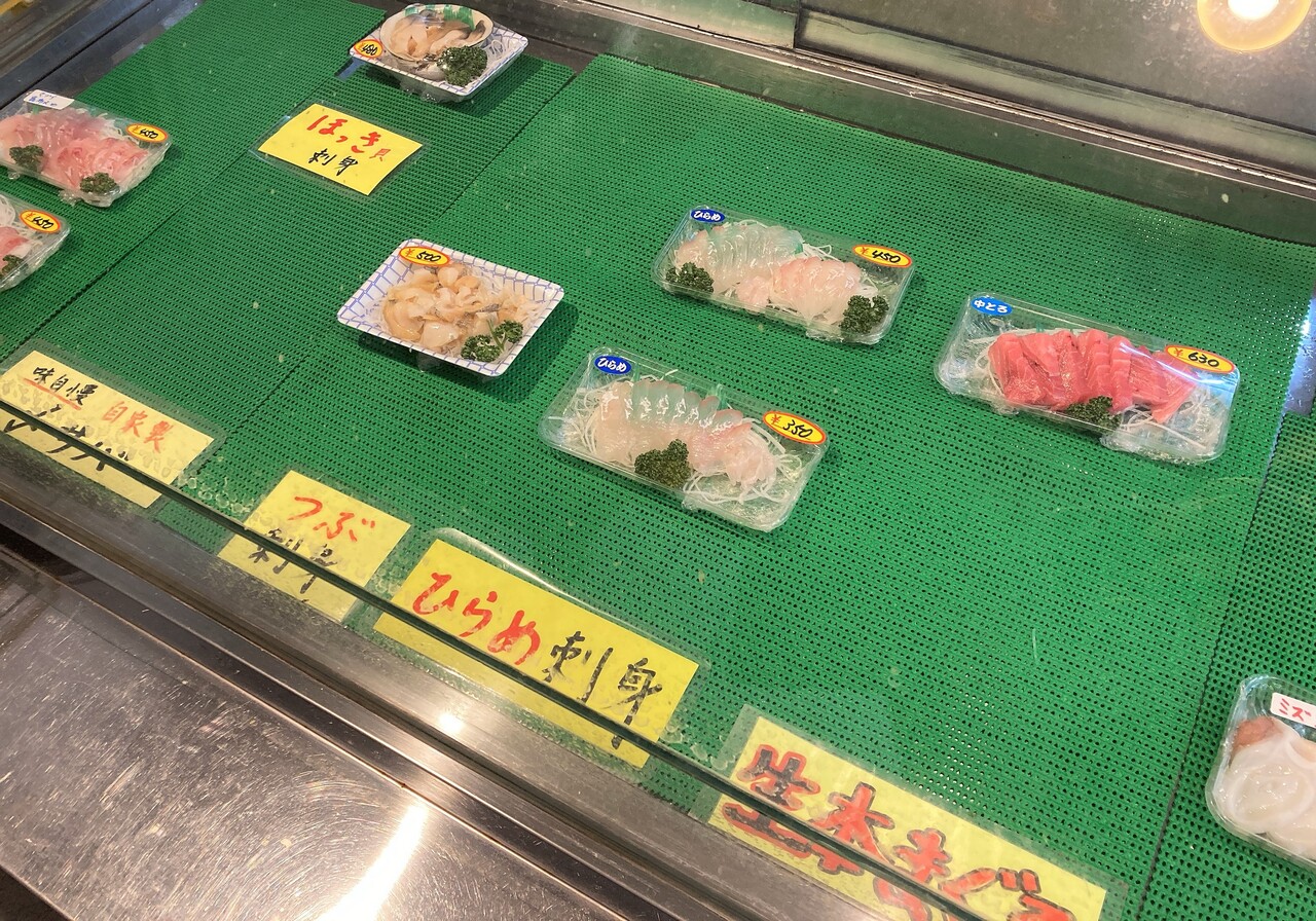 刺身が並んでいましたが、ド素人の自分が見ても鮮度が良さそうってわかるやつ。