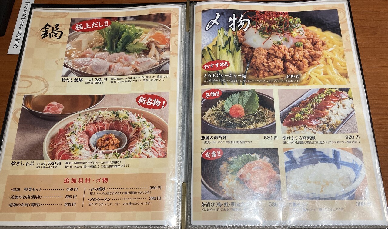メニュー。