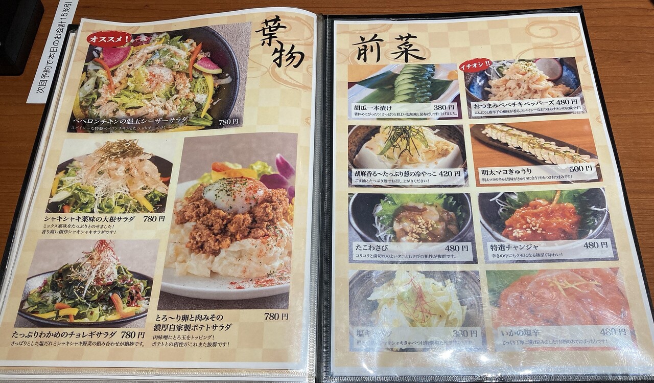 葉物、前菜メニュー。