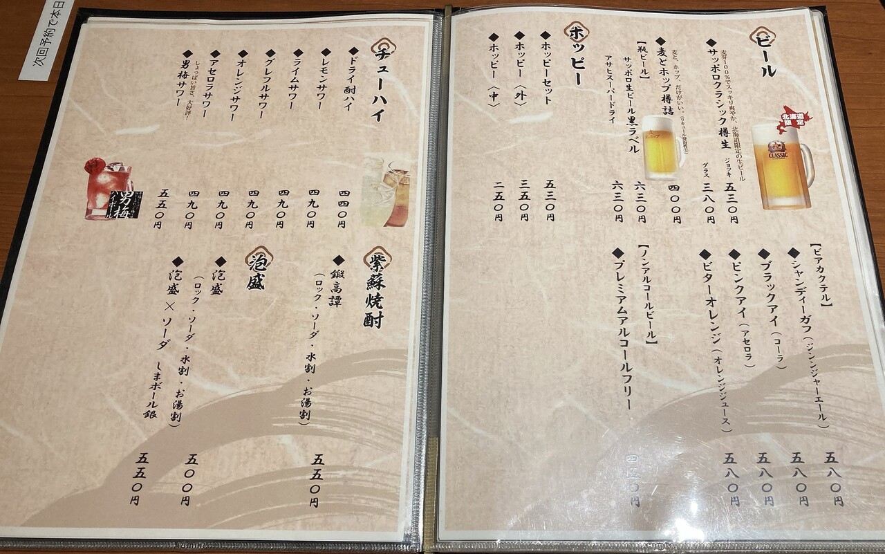 ここからは、飲み物メニュー。