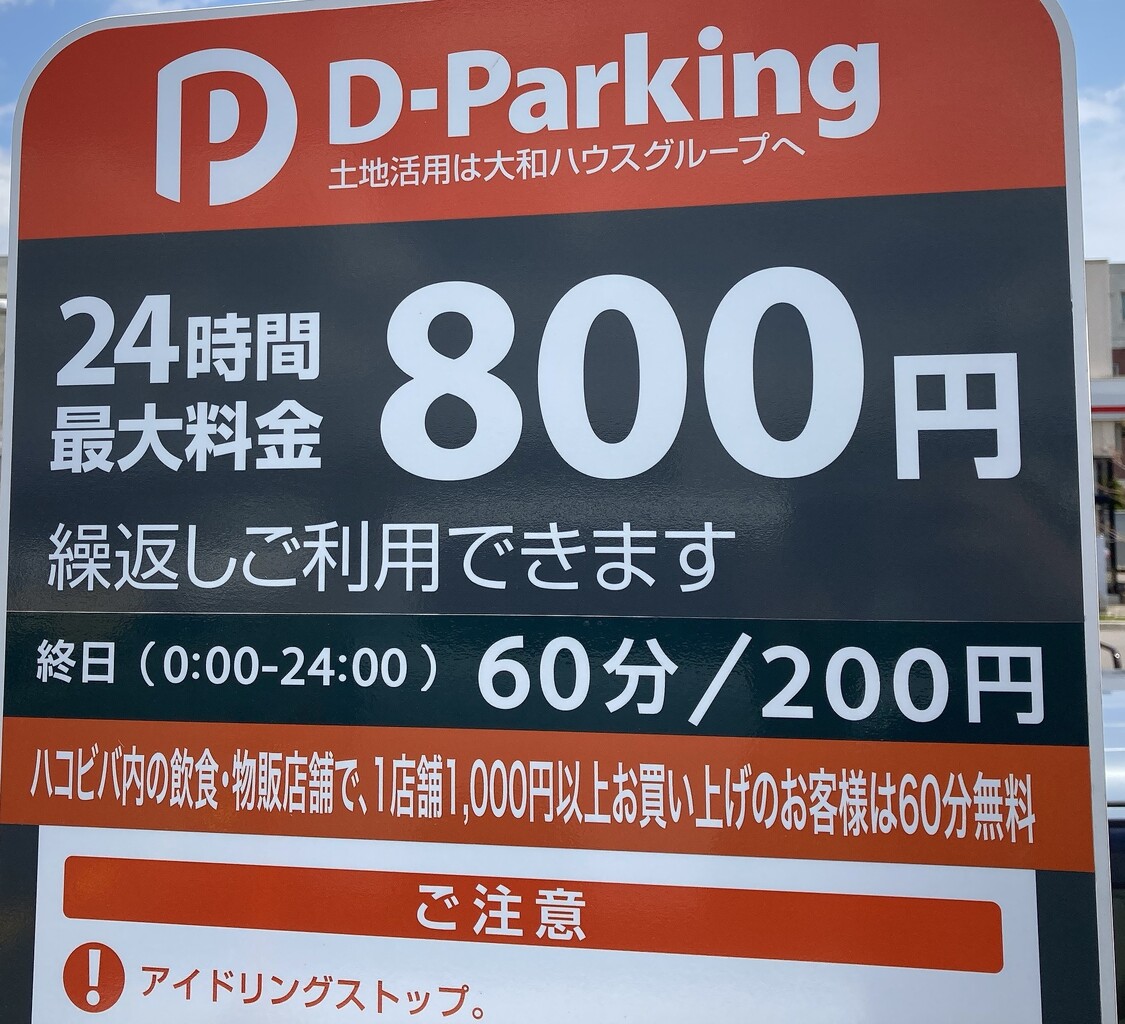 ハコビバ内で1店舗1000円以上使うと60分無料になります。