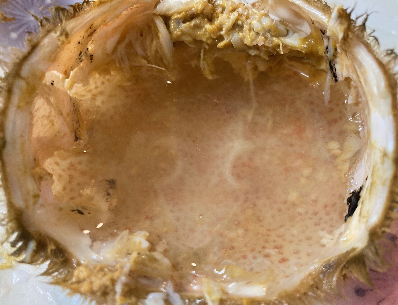 大きさは小ぶりだけど、身入りのいい毛ガニ。