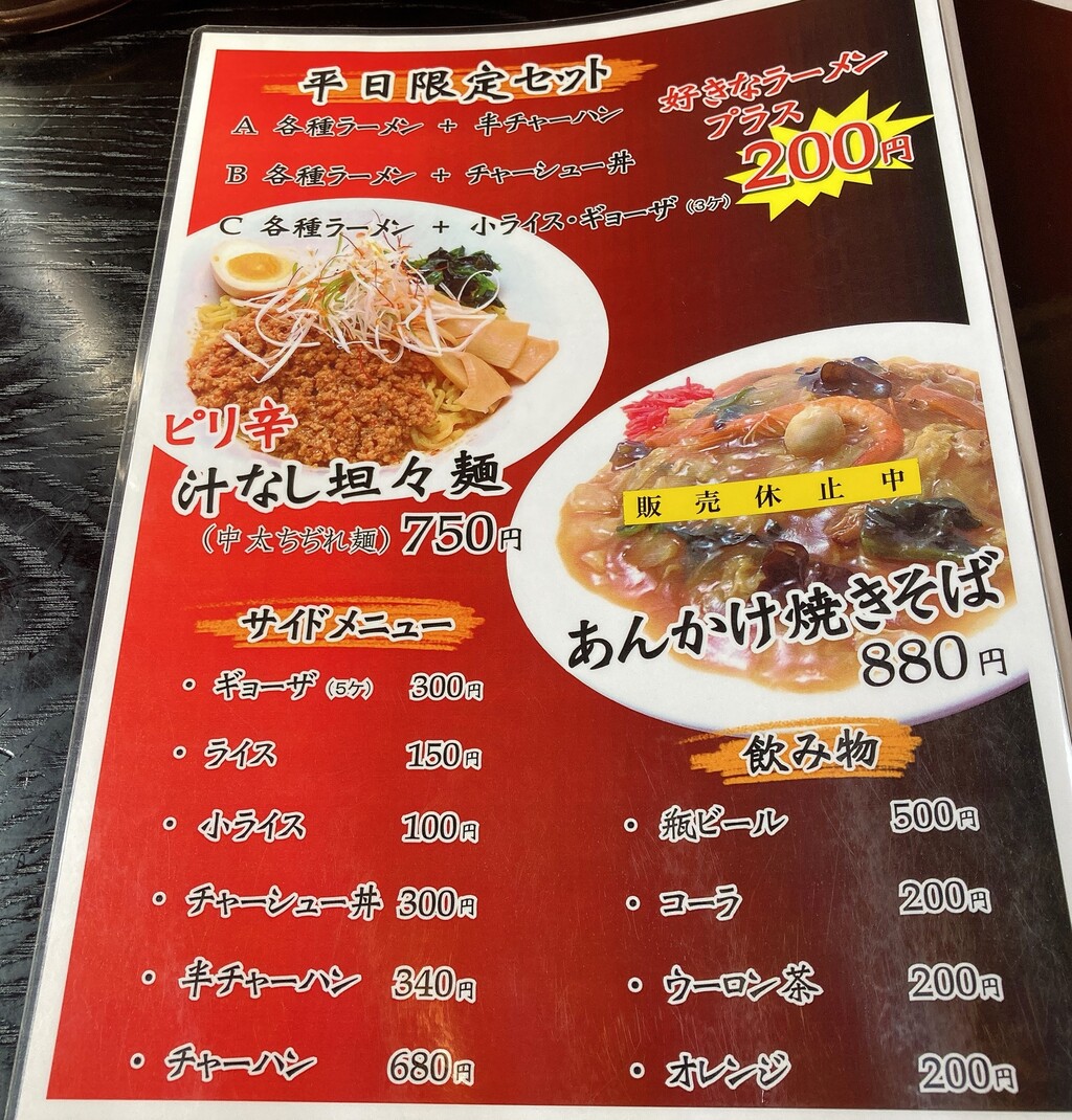 席に座り、メニューを眺めながらラーメンを待ちます。