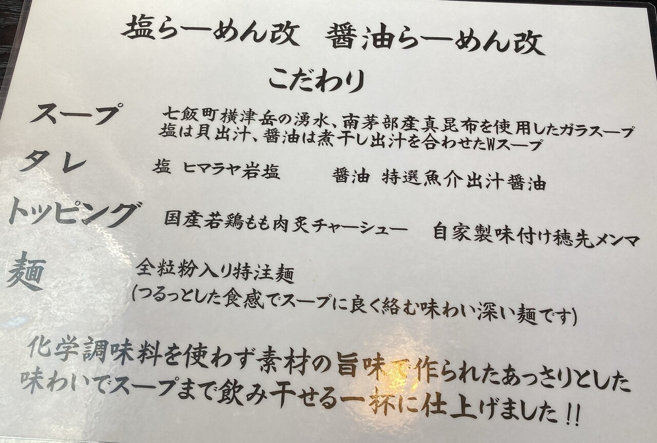 塩らーめん改と醤油らーめん改というのもあります。