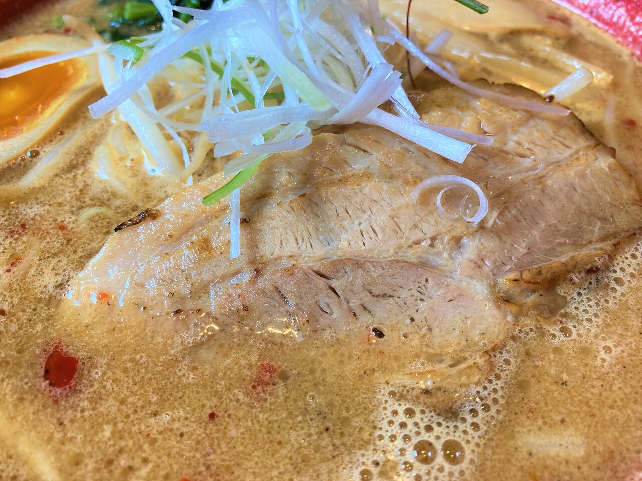 箸でほぐれるレベルの柔らかチャーシューが のります。