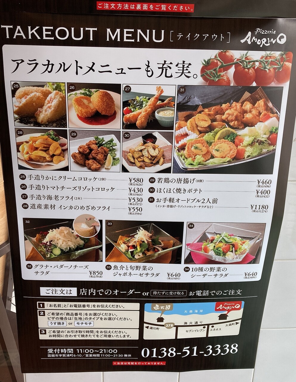 テイクアウトメニューに書いてあるとおり、