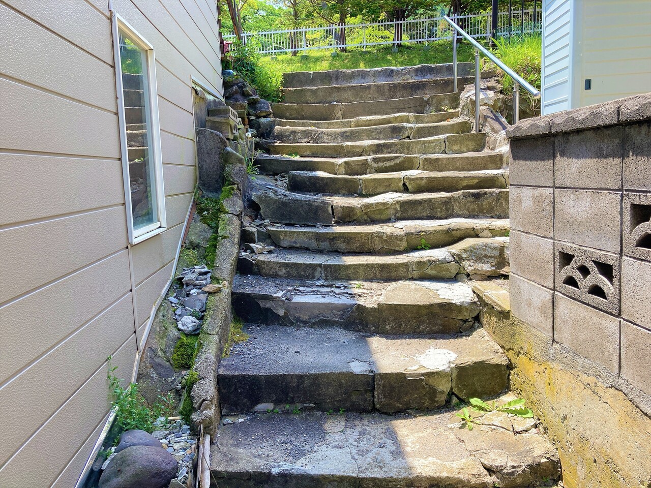 店の横道の趣のある石階段が、結構 老朽化してきて補修の跡も。