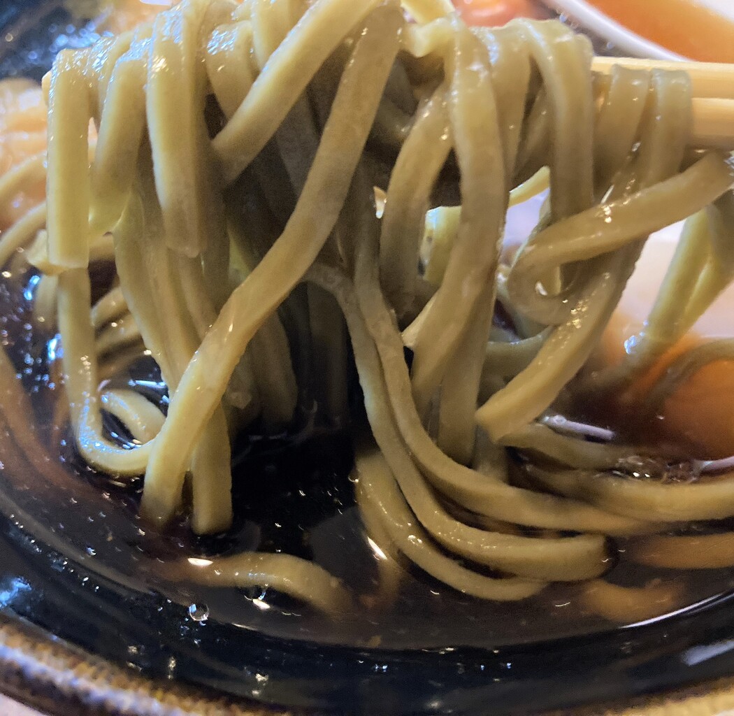 若干緑色で、麺が細いのが印象的。