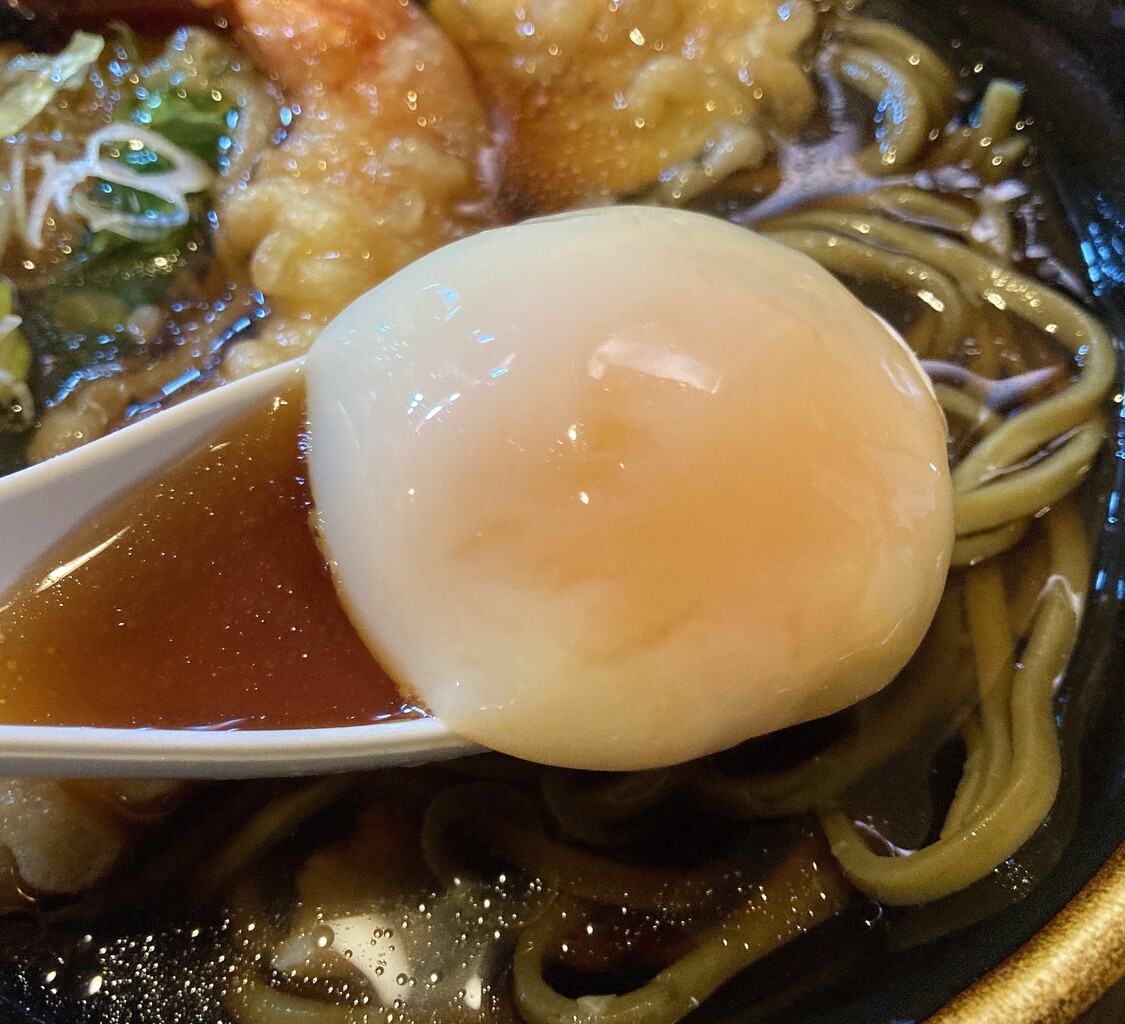 天ぷら各種と、温玉がのります。