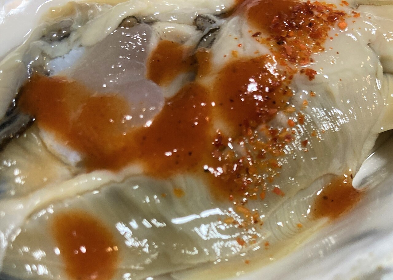 ネットで話題の、タバスコをかけて牡蠣を食べてみたやつ。