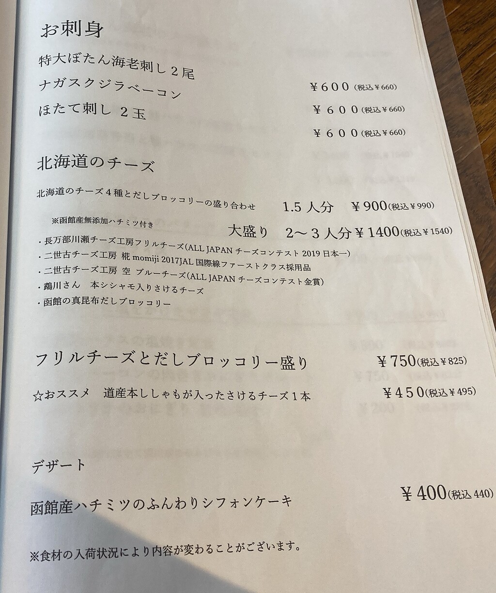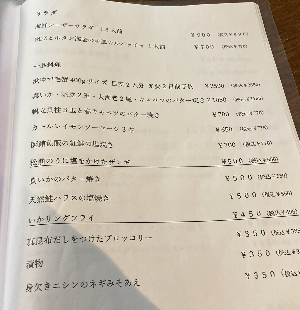 海鮮系中心のラインナップ。