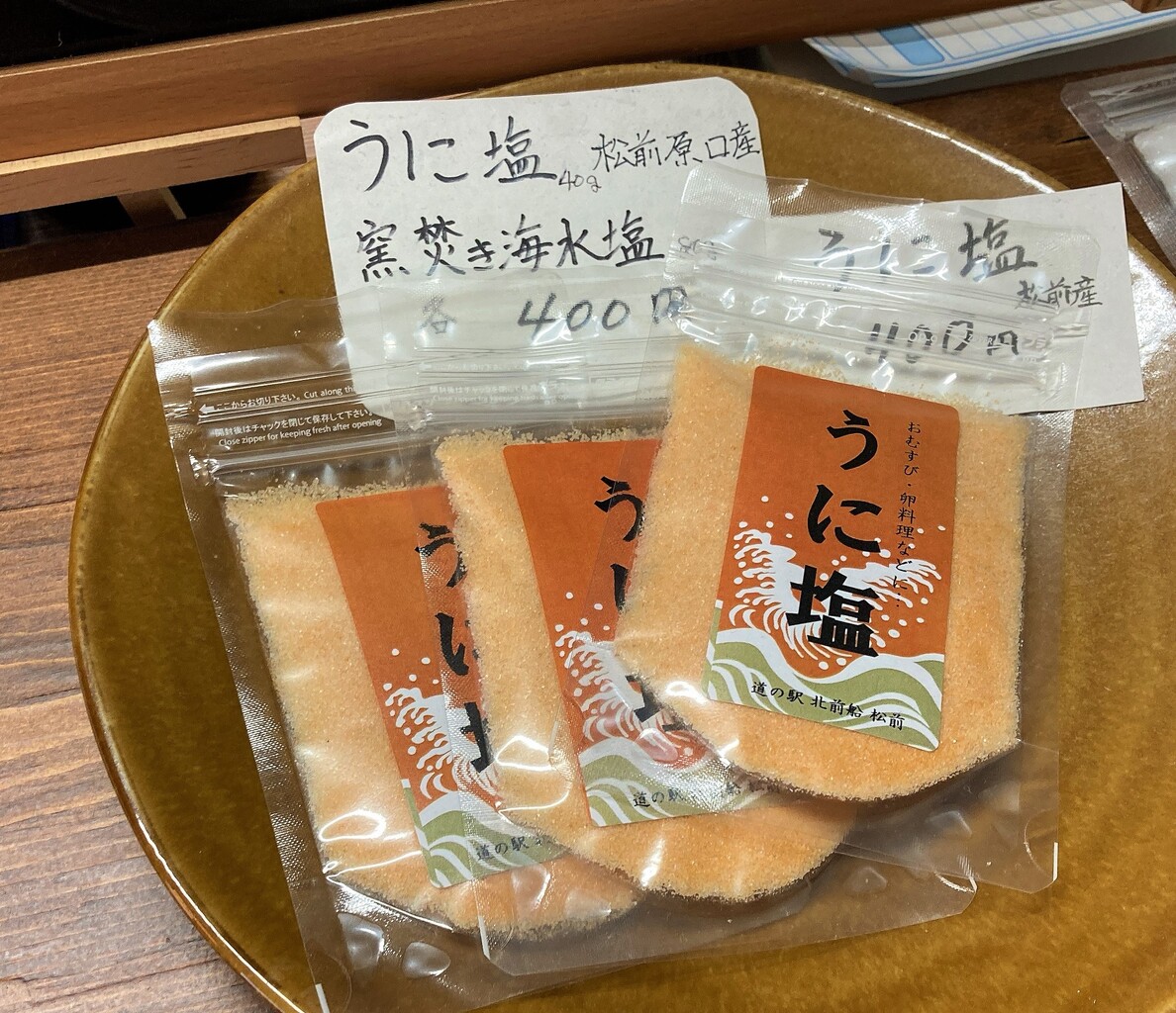 色々な塩を見てきたけど、うに塩は初めて見たな。