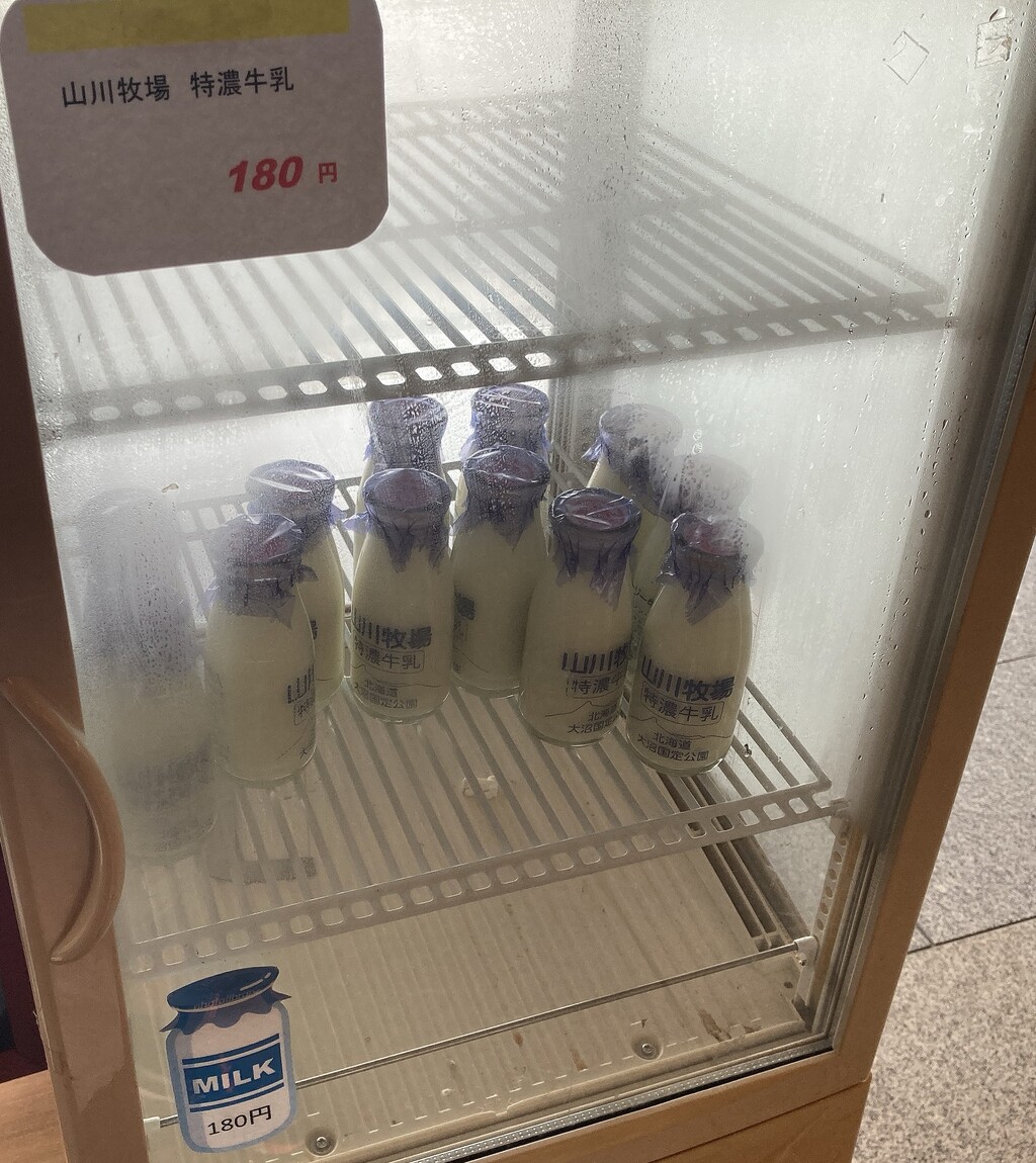 あげパンのお供にと、七飯町の山川牧場の牛乳が売られていました。