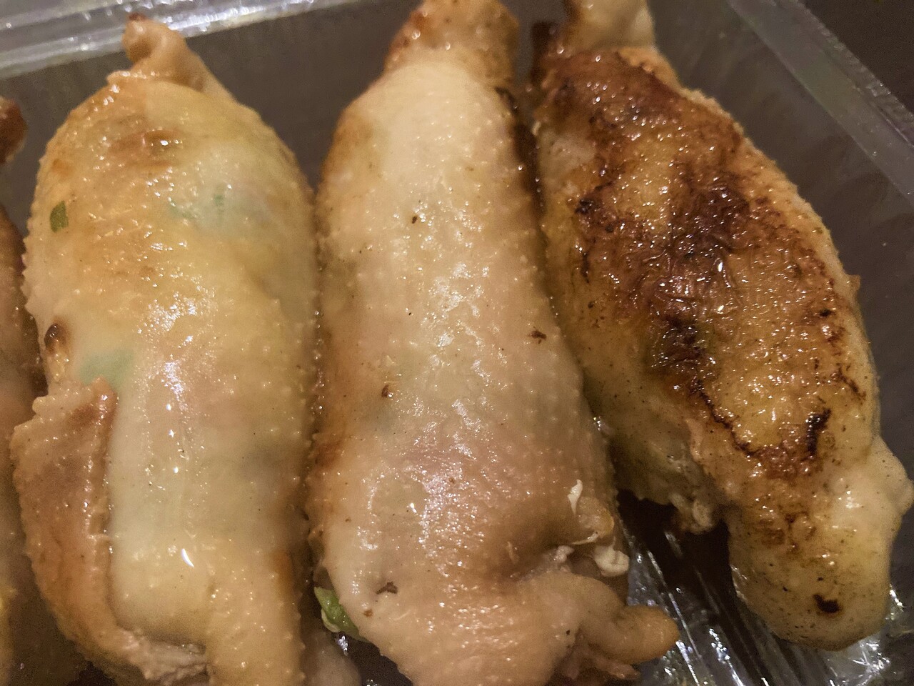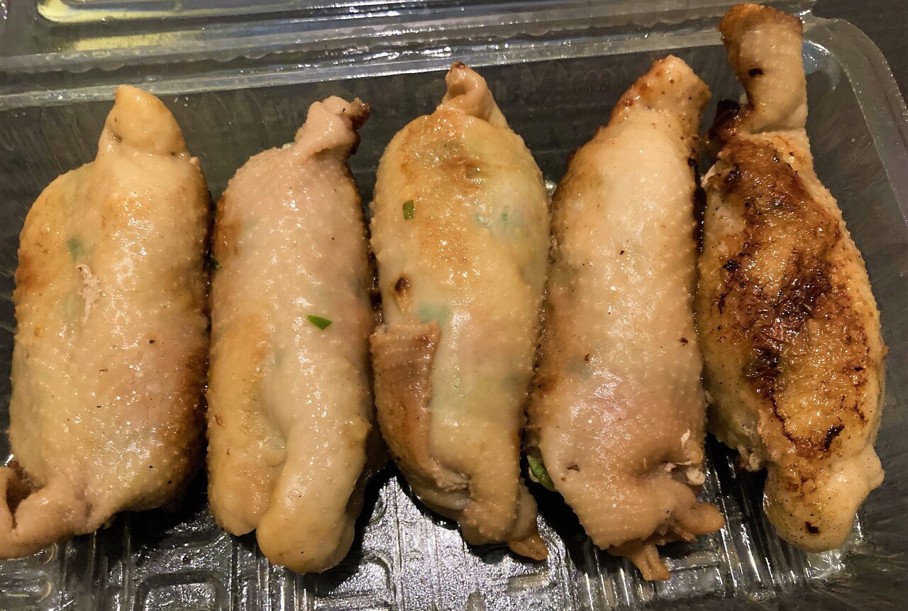 パンチがあってすごくおいしい とり皮餃子。