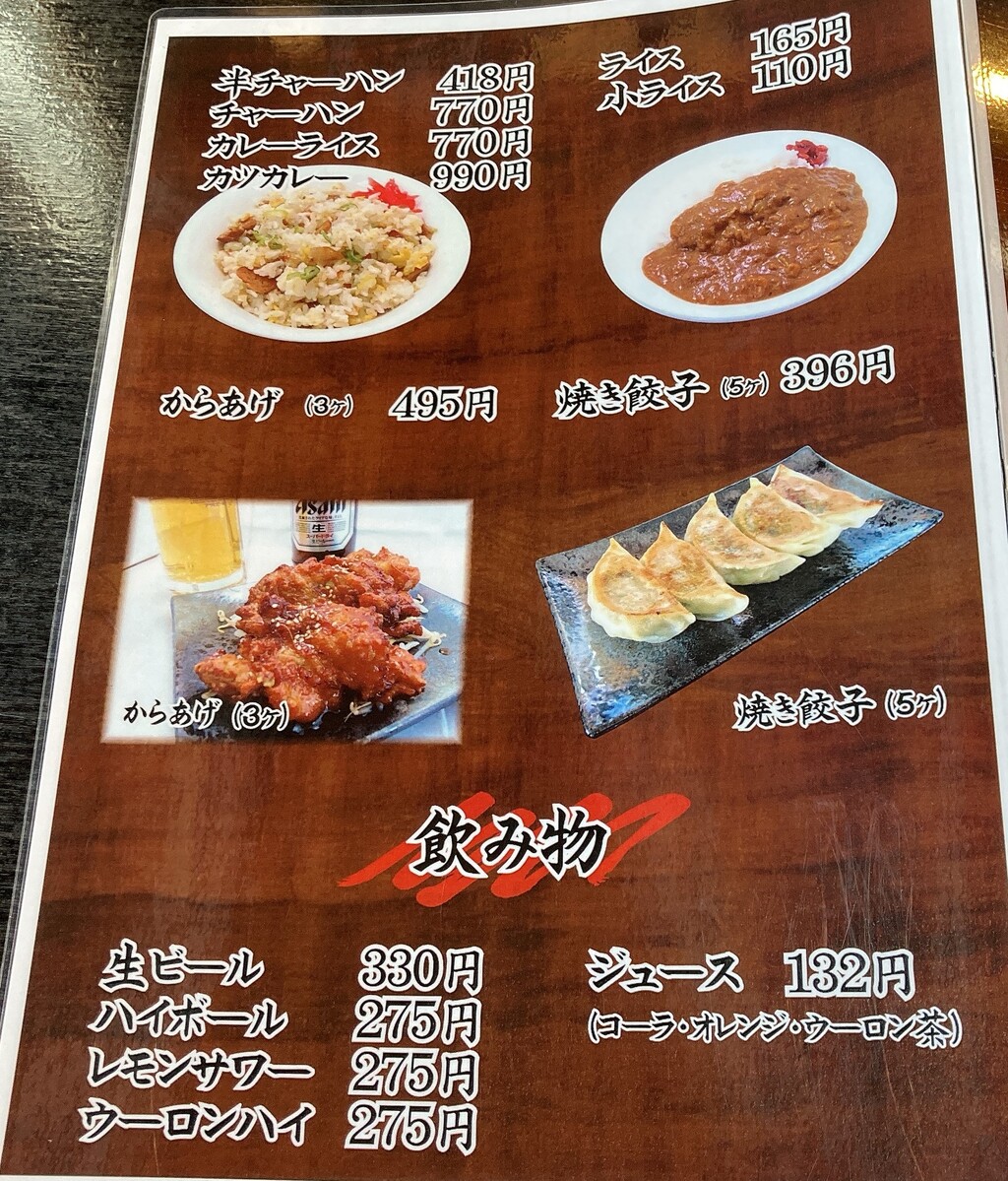 つまみとなる、からあげと焼き餃子も安いし、