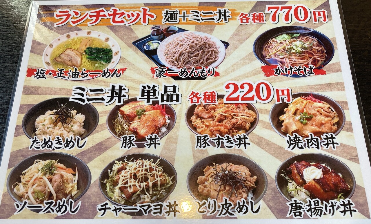 麺とミニ丼のランチセットもお得。