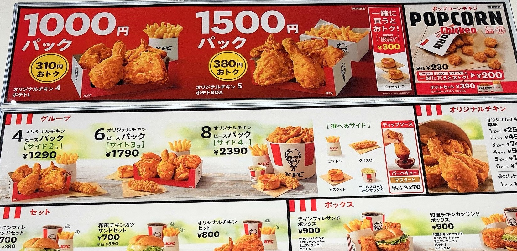 オリジナルチキン4つとポテトLの1000円パックは、9月7日迄。