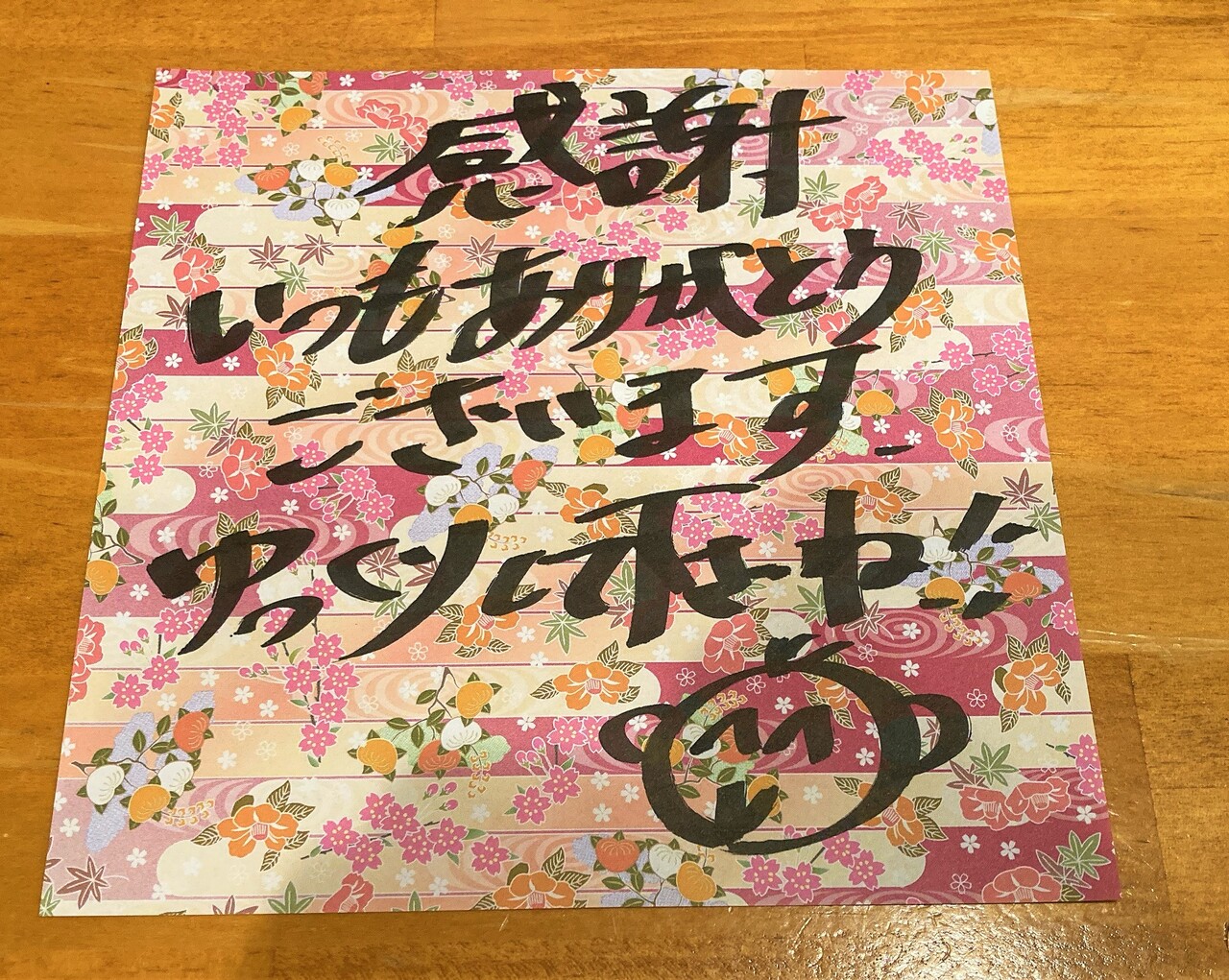 予約して行ったら、テーブルにメッセージが置かれていました。