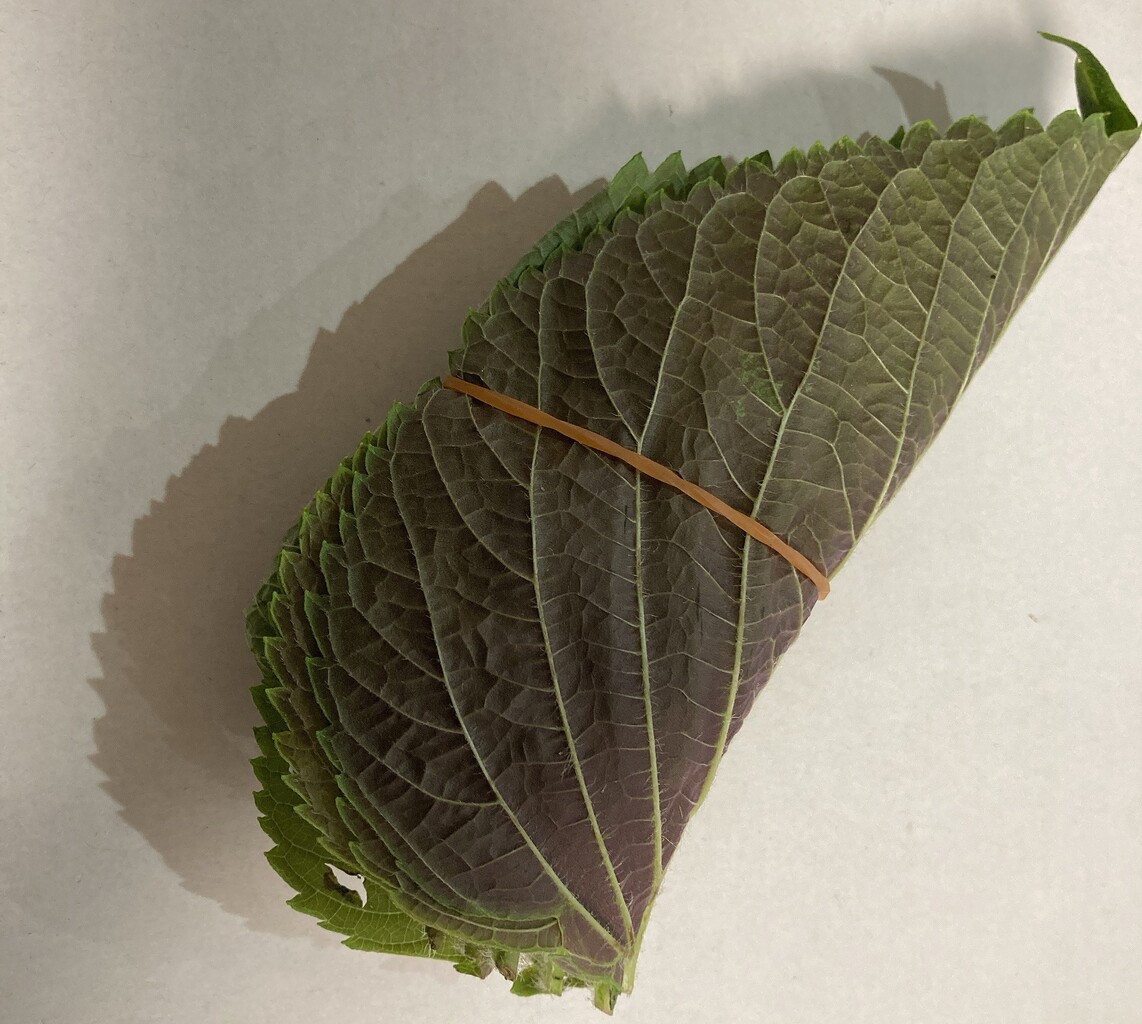 香草のような感じもしたりするけど、シソとは違う何とも表現しがたい味。