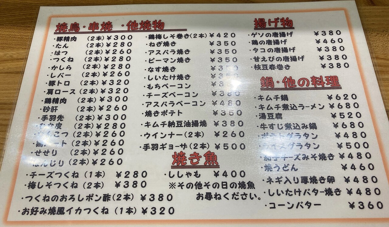 焼き鳥をはじめ、揚げ物や一品料理等、種類豊富。