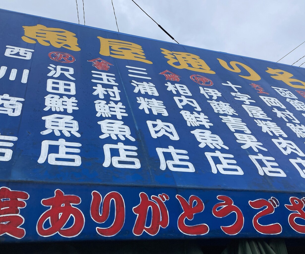 中島廉売にある、肉屋さんと肉屋さんの間にある鮮魚店。