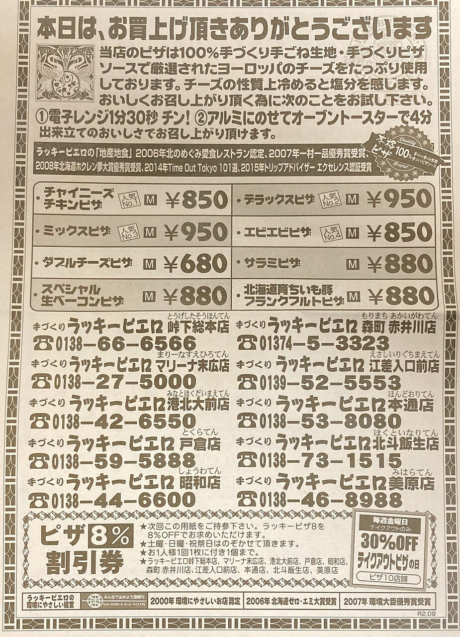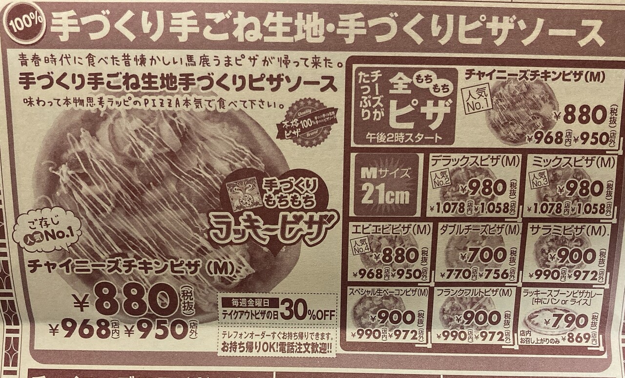 ピザを提供している店舗は上の画像のとおり。