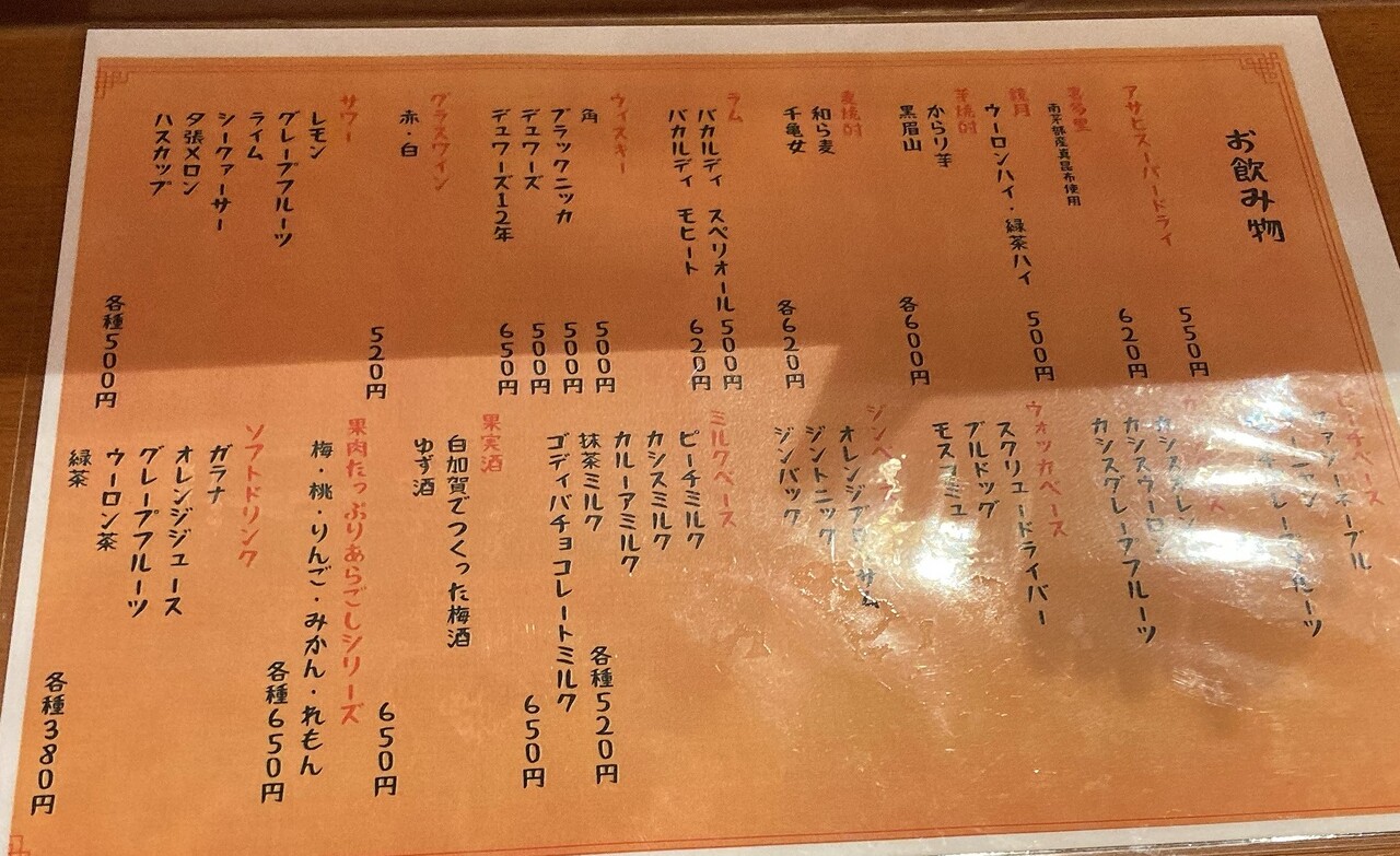 飲み物メニュー。