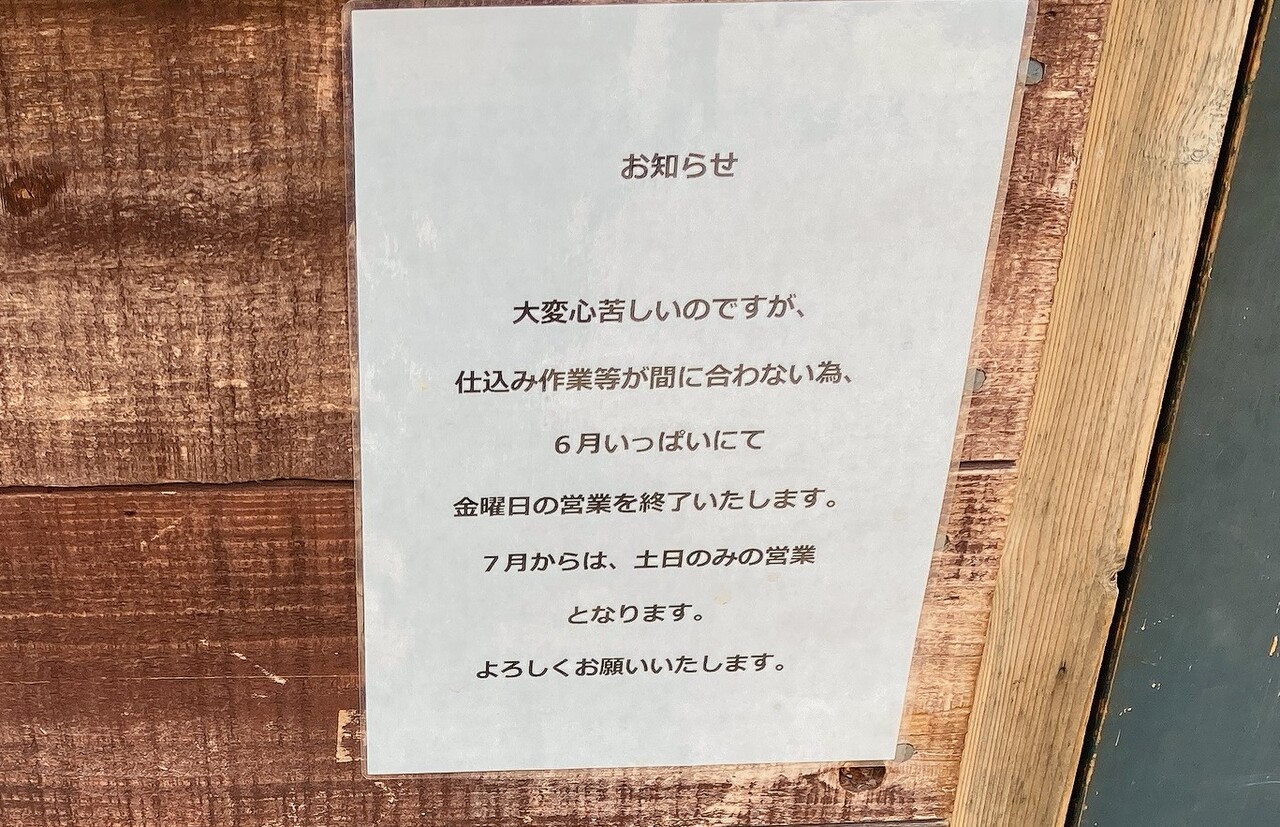 今年の7月から土日のみの営業になったようです。