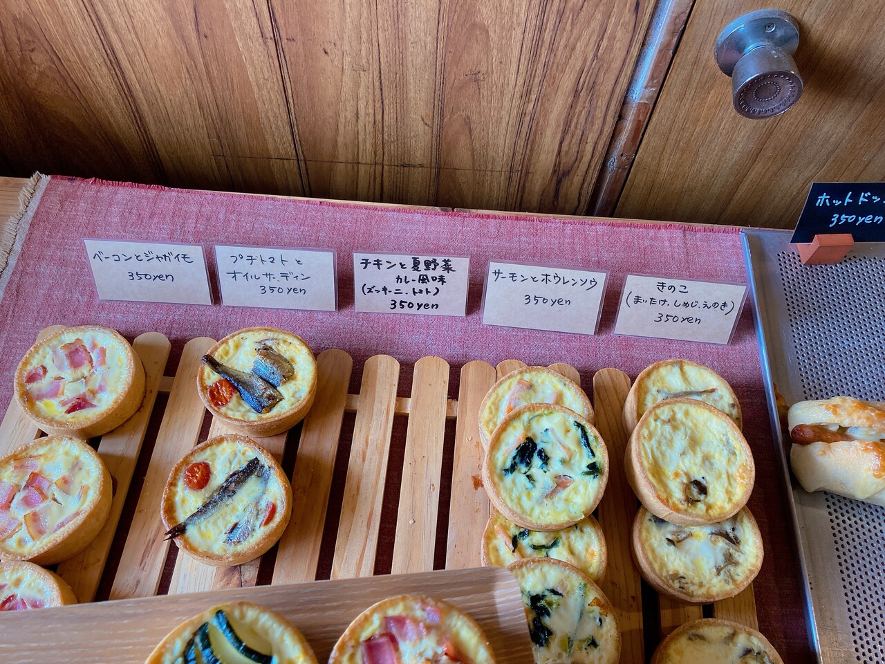 大人気のキッシュは、各種350円。