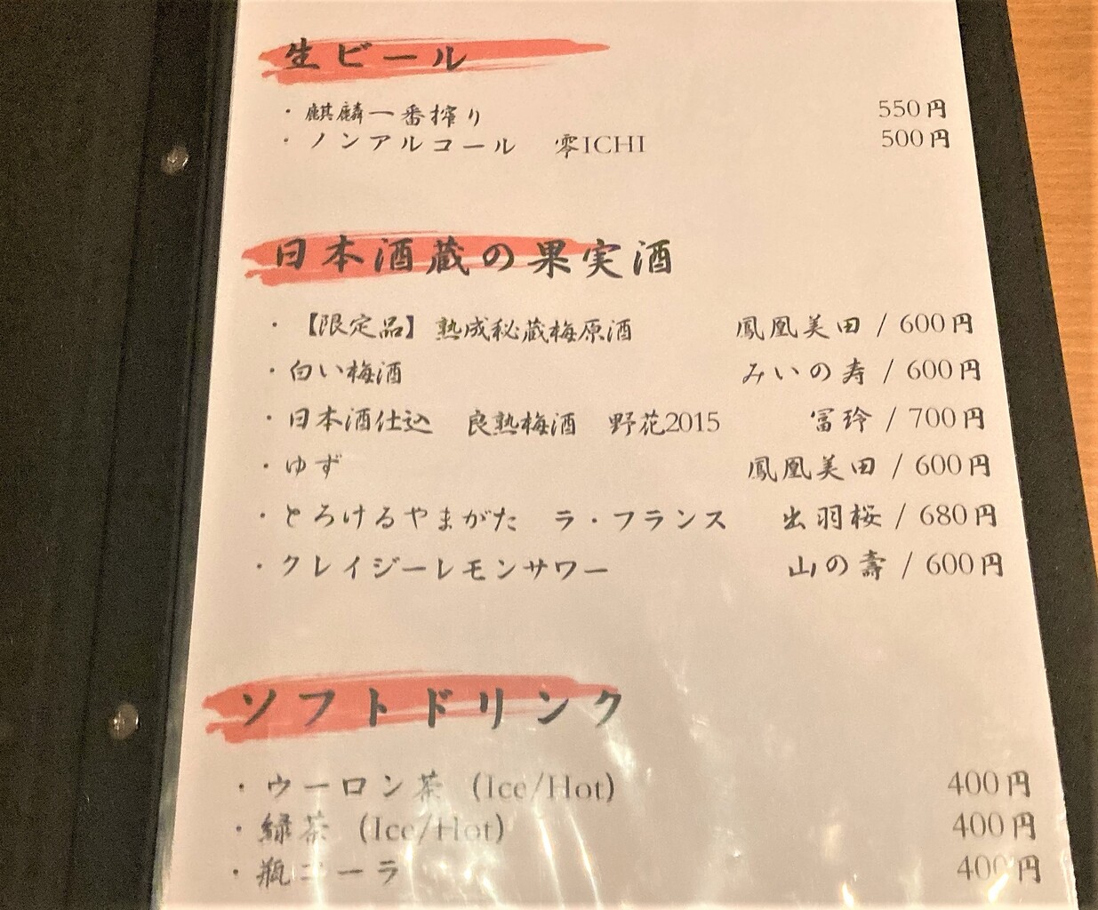 生ビールやソフトドリンク、