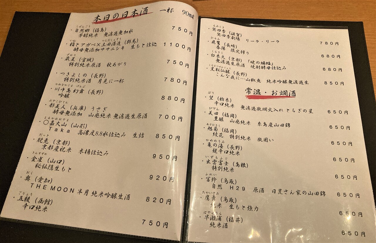 本日の日本酒。