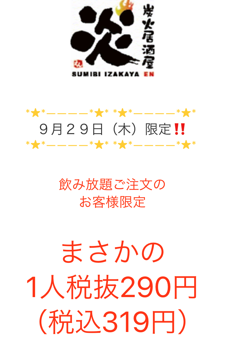 お得な企画をやっている居酒屋 炎。