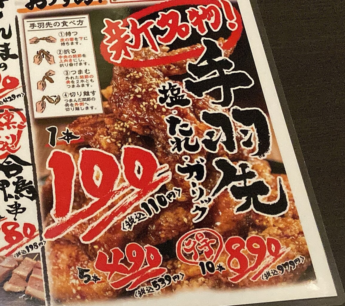 通常だと、110円(税込)の手羽先が、