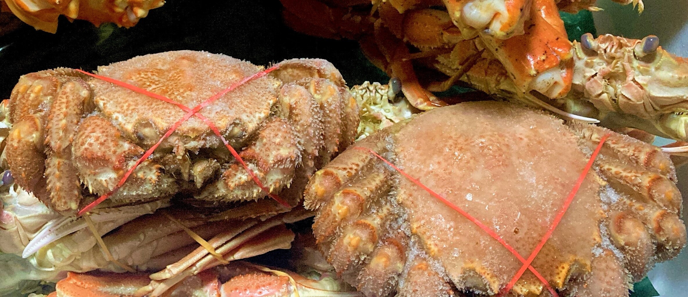 タラバガニ、毛ガニ、ズワイガニの三大カニを仕入れ。