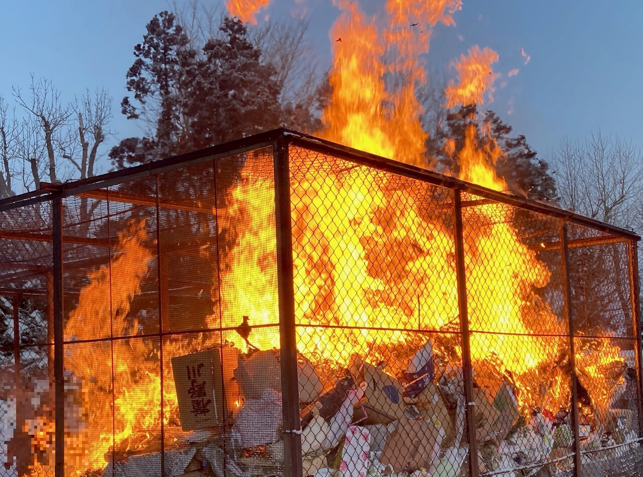 お祓い後に焚き上げ、年間の無病息災をお祈りする行事。