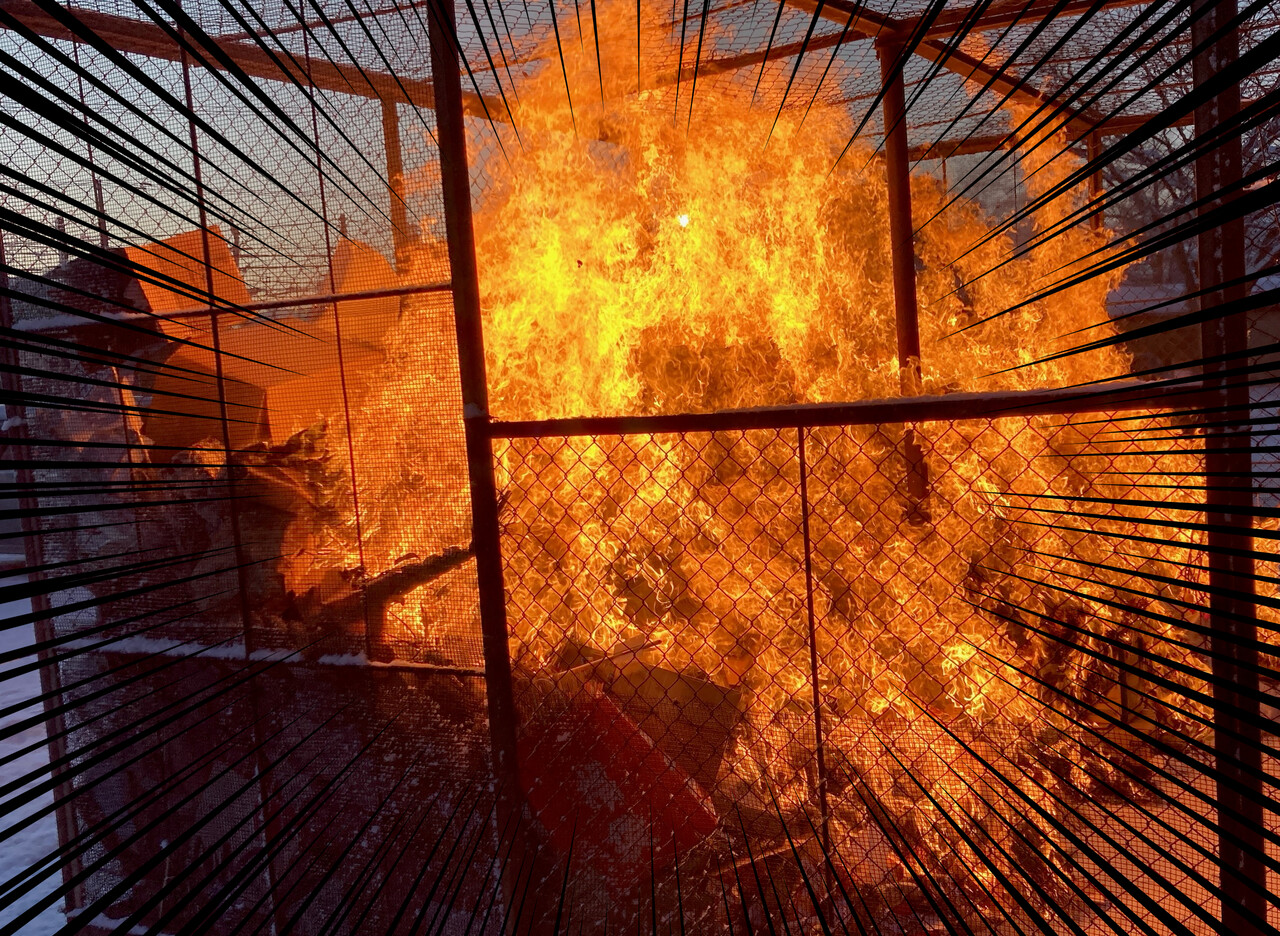 そして係りの人が火を着けた。