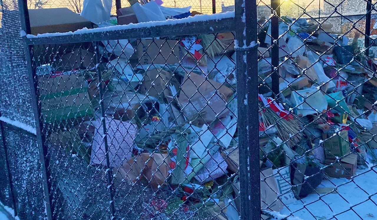 ちなみに、どんど焼きへ しめ縄を入れてくる袋は、