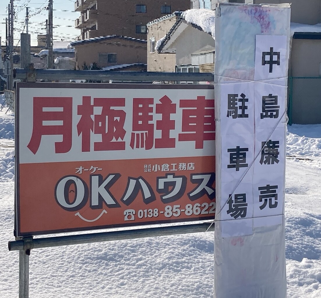 中島廉売には、道路沿いの肉屋の右横に駐車場があるけど、