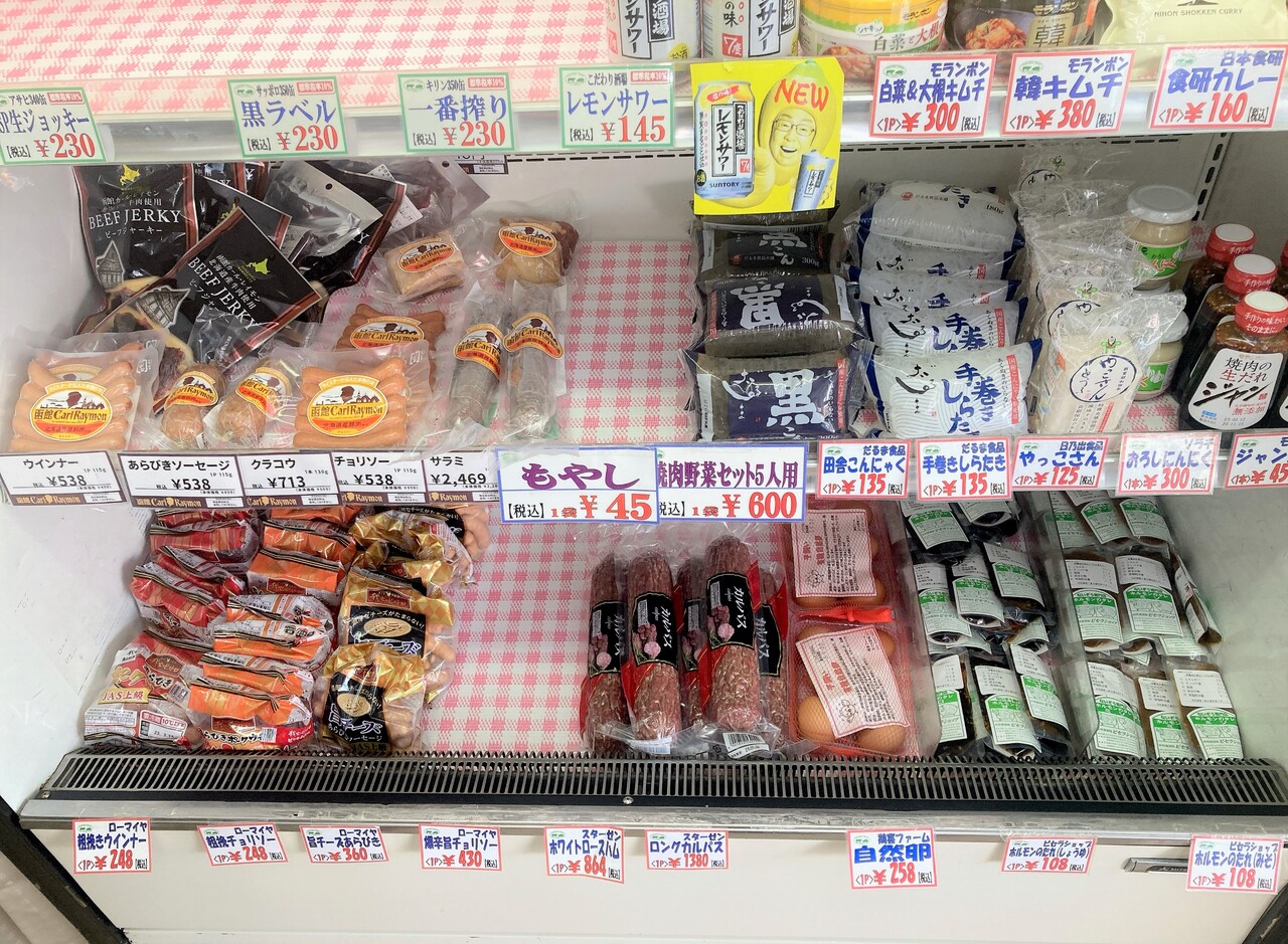 肉以外にも、こんにゃくやお酒も売っている。