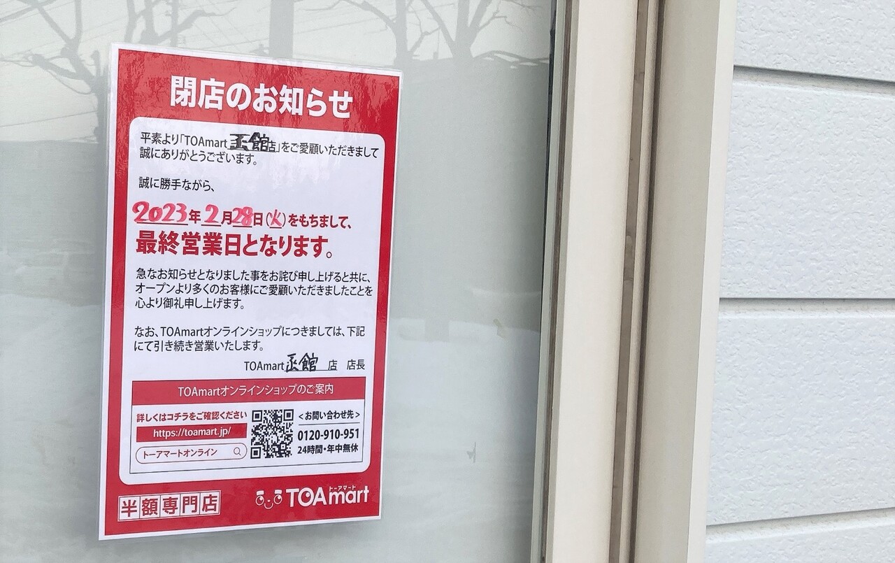今回は「函館店」の閉店で、