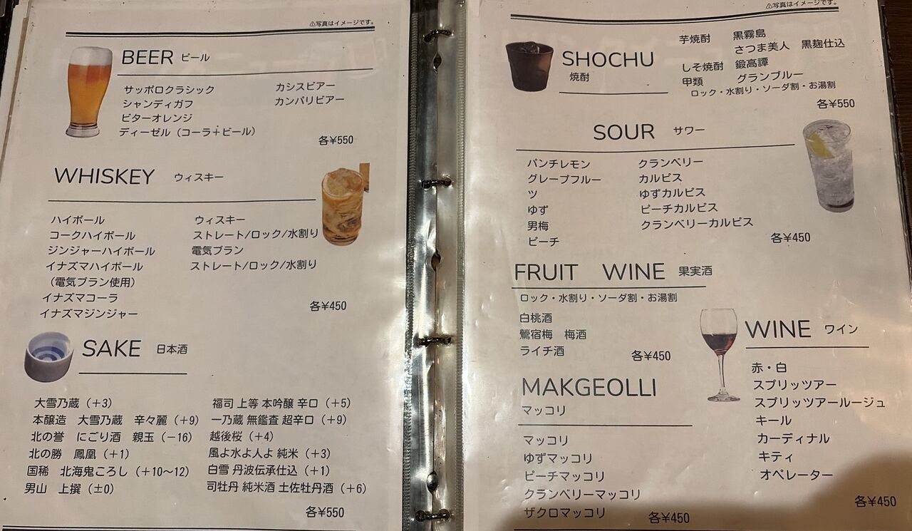 ドリンクメニュー。
