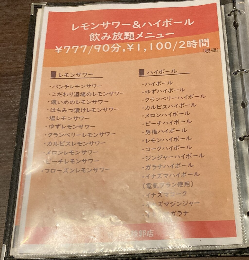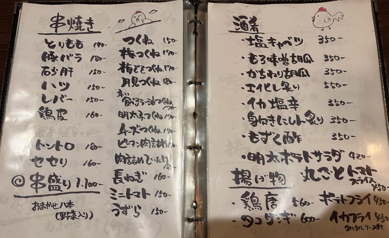 串焼きや居酒屋メニュー。