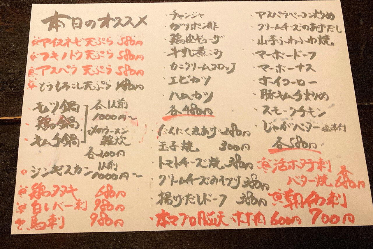 今が旬の ふきのとう等の山菜が本日のおすすめでメニュー入り。